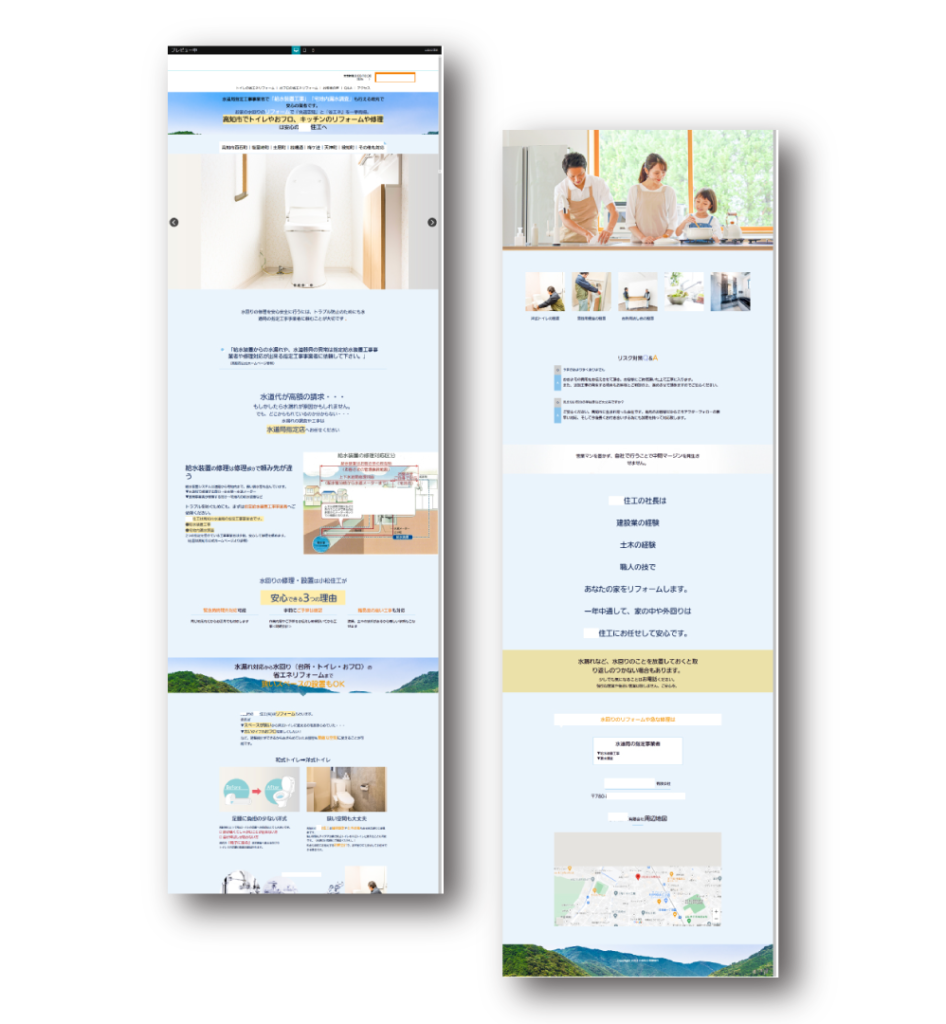 個人経営のリフォーム会社では集客数のコントロールが必要です。そのため、大手のLPのような売り込み主体の作りではなく、個人経営ならではの特徴を打ち出しました。